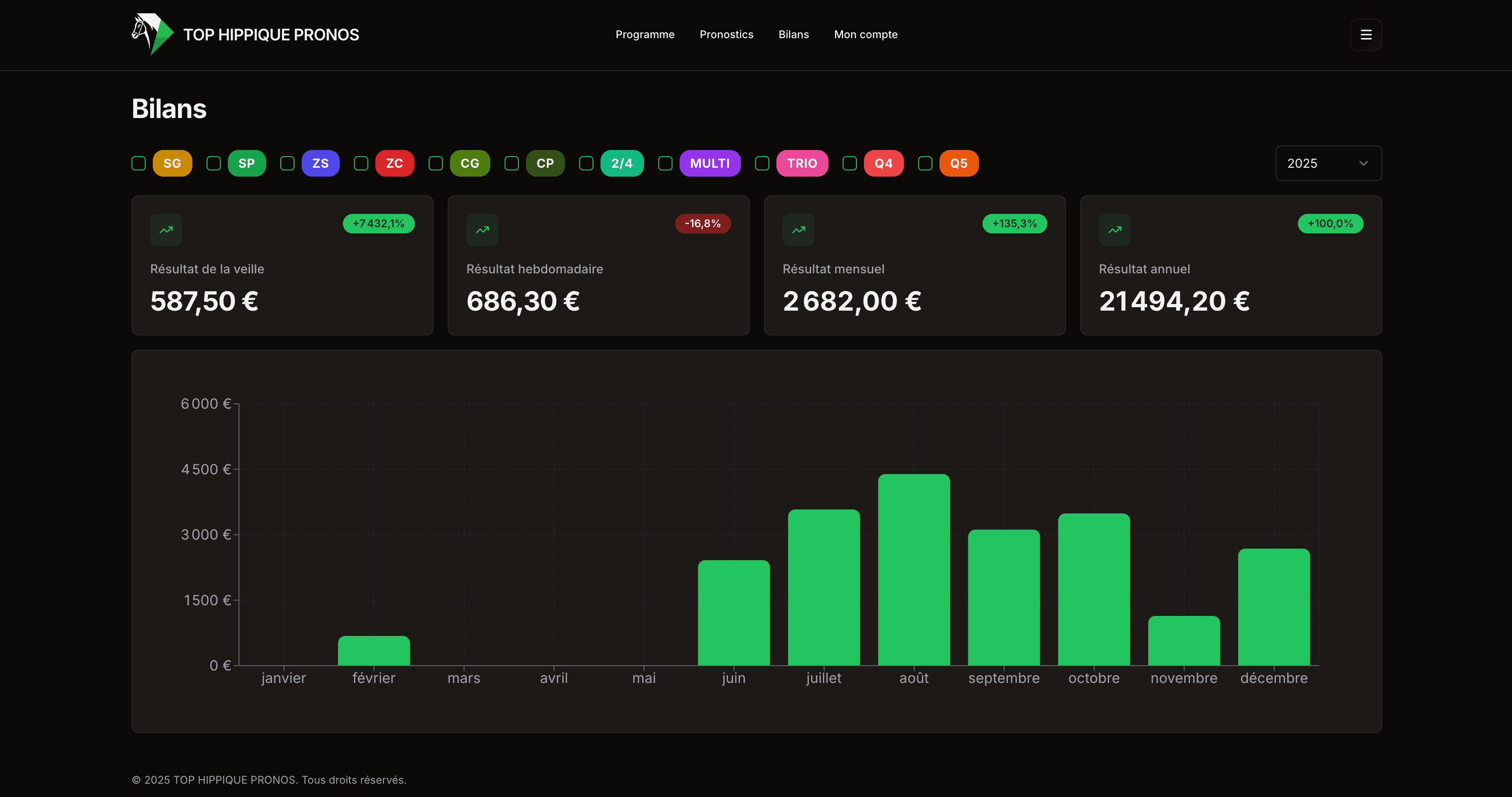 Une plateforme complète pour optimiser vos paris hippiques. Consultez nos bilans mensuels et nos tutoriels pour maximiser vos chances de réussite.